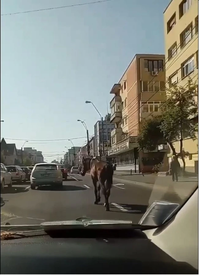 Şoferii care circulau pe bulevardul Bucureşti au avut parte de o apariţie inedită. Un cal se plimba nestingherit printre maşini. Acesta nu părea să fie deranjat de traficul din jur. Imaginile au fost surprinse de un taximetrist.