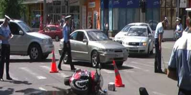 VIDEO Un tânăr profesor motociclist a fost implicat într-un accident de circulaţie, de faţă cu elevii săi