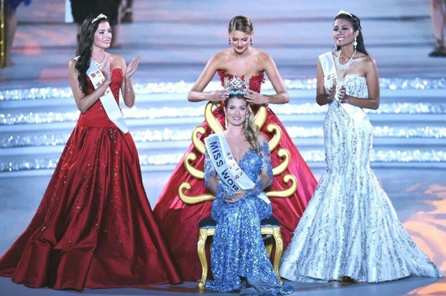 Mireia Lalaguna, câştigătoarea Miss World 2015, purtând una din creaţiile bistriţencei (Foto: Tina Olari)