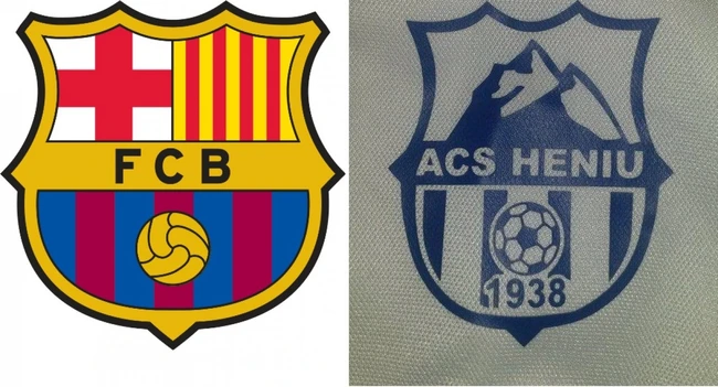 O echipă de fotbal feminin din comuna bistriţeană Prundu Bârgăului a fost somată de celebra Barcelona să-şi schimbe sigla. Asemănările constatate de cei de la Barcelona sunt conturul şi fontul scrisului din interior. ACS Heniu foloseşte sigla încă de la înfiinţare, din anul 2013.
