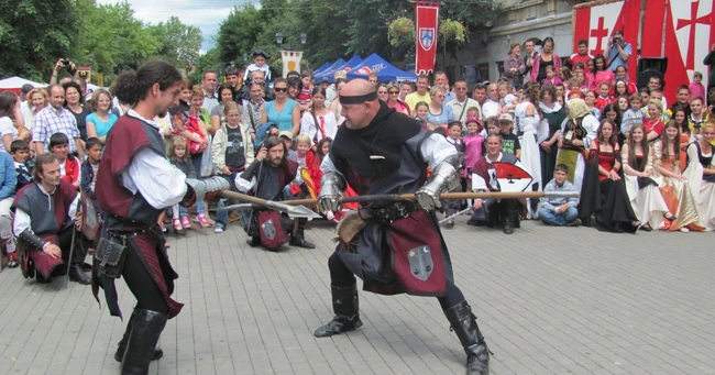 Punctul de maxim interes al zilei a fost mica scenă de lemn din mijlocul pietonalului unde, cavalerul Hartman din Berlin, a ţinut o lecţie deschisă despre ce înseamnă să fii cavaler. Actor în mai multe filme istorice ale lui Sergiu Nicolaescu şi vicecampion mondial la scrimă demonstrativă, cavalerul a salutat domniţele galant, i-a certat pe tinerii care greşeau în lupta cu arma şi s-a întreţinut cu copilaşii veniţi în număr foarte mare. Garda cavalerilor din Bistriţa, dar şi paladinii din Mediaş au dus lupte demonstrative şi au arătat publicului tehnicile folosite de luptătorii medievali.