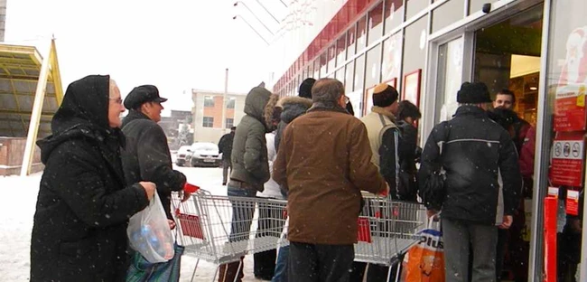 0Cumpărătorii au stat la coadă la uşa magazinului