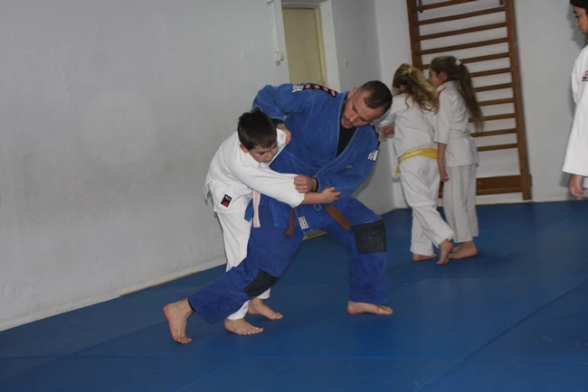 Alături de Andrei, încă un poliţist îi învaţă pe cei peste 30 de copii ai clubului tainele judo-ului. Este vorba despre Sorin Hoha-Pop, un armurier de 47 de ani.