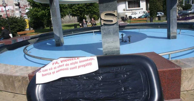 0Vineri, la Bistriţa au poposit primul ministru Victor Ponta, ministrul Sănătăţii Nicolae Bănicioiu, vicepremierul Liviu Dragnea, precum şi ministrul Apelor, Pădurilor şi Pisciculturii Doina Pană. În timp ce Victor Ponta vizita Spitalul Judeţean de Urgenţă, la doi paşi, lângă o fântână arteziană, a fost amplasată o barcă gonflabilă pe care stătea scris mesaj: „Fă, Viorele, în caz că ai chef de nişte inundaţii, barca şi oamenii sunt pregătiţi”.