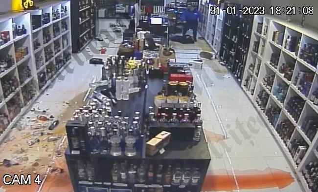 Un taximetrist a făcut prăpăd într-un magazin din Bistrița. A spart zeci de sticle de alcool