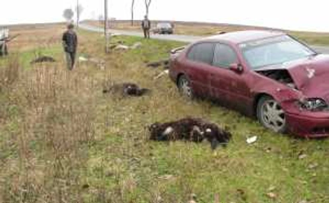 0Şoferul unui Lexus cu numere de Olanda a intrat în plin în turma care traversa şoseaua. 30 de oi au fost ucise pe loc.