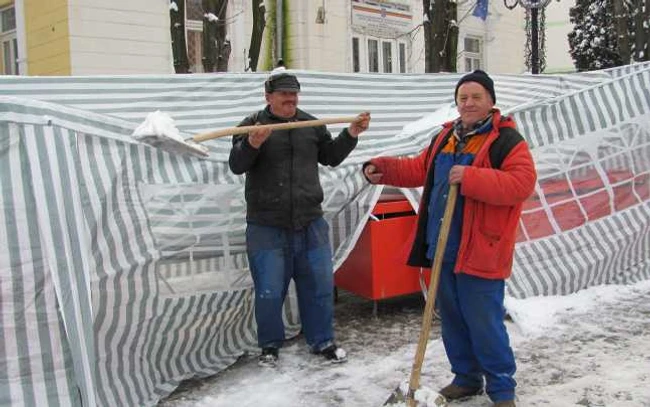 Pregătirile pentru „Târgul de produse tradiţionale" sunt îngreunate de ninsorile abundente care au căzut ieri seară.