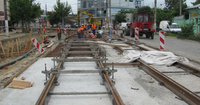 La tronsonul dintre străzile Calea Galaţi şi strada G-ral Ieremia Grigorescu se lucrează din plin la noua cale de rulare a tramvaielor.