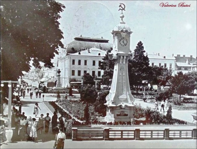 0Monument unic în România, marcă înregistrată a orașului Brăila din 2017, ceasul-turn a fost schimonosit pe vremea comunismului: pe vârful turnului metalic au fost aşezate secera şi ciocanul.
