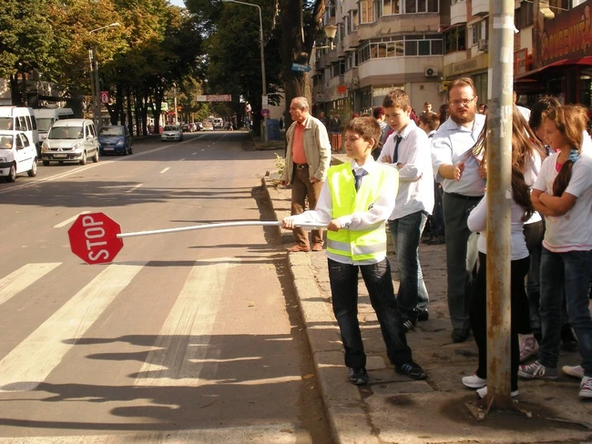 Bucuria copiilor a fost evidentă când, ajutaţi de poliţiştii adevăraţi, au reuşit să oprească traficul şi să acorde prioritate de trecere pietonilor. Totodată „micii poliţişti" au transmis un mesaj conducătorilor auto opriţi pentru a acorda prioritate pietonilor, rugându-i să „împartă drumul şi cu pietonii" şi oferindu-le pliante cu sfaturi preventive în acest sens.