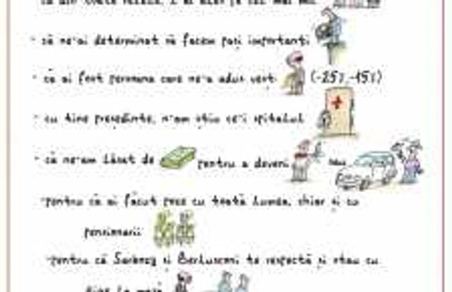 De-a dreptul nevinovată, caricatura este "cu adresă" şi face referire la viaţa "mai bună", la stilul preşedintelui, la lumea în care trăim, deloc una roz, în accepţiunea artistului. Caricatura este o trecere în revistă a tot ceea ce trăiesc românii în regimul Băsescu şi Boc. Iată: