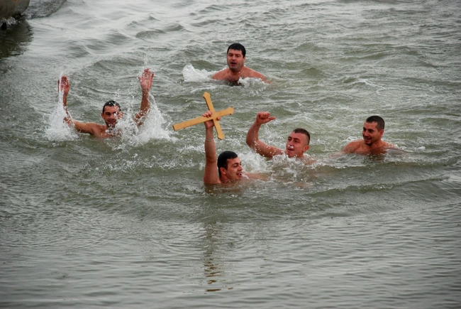 0La Brăila, cinci temerari s-au încumetat să sară în apele reci ale Dunării pentru a recupera crucea aruncată de IPS Casian Crăciun, arhiepiscopul Dunării de Jos. Aceştia nu au îmbrăcat costume neopren sau altfel de echipamente de protecţie. Brăilenii care au vrut să asiste la spectacolul prinderii crucii au fost crunt dezamăgiţi: din cauza neglijenţei autorităţilor, totul s-a petrecut în spatele unui restaurant plutitor.
