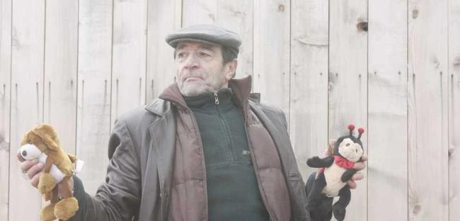 Omul a venit dis-de-dimineaţă în obor, aşa cum face de câteva duminici încoace, şi se străduieşte să vândă un telefon cu disc - piesa de rezistenţă de pe carpeta sa - câteva sârme, „piese de Dacie 1300", vreo cinci cărţi pe care nu le-a citit niciodată, dar şi nişte bocanci de la un nepot.
