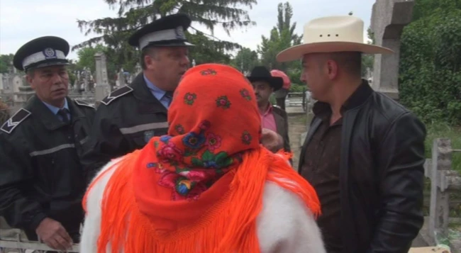 Alţi rromi au fost întorşi de la poarta cimitirului de către agenţii care i-au văzut că voiau să intre cu grătare. Cei sancţionaţi au protestat, spunând că n-au ştiut că nu e voie cu grătarele în cimitir şi că aşa e tradiţia la ţigani, să se facă masă mare, cu friptură şi cu fum, pentru sufletul răposaţilor. Totuşi, rromii s-au conformat şi au strâns grătarele.