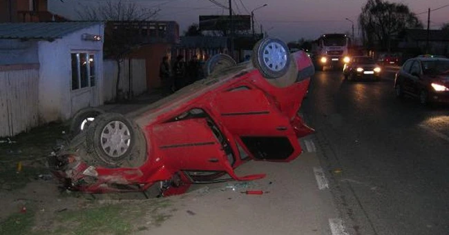 S-a stabilit până acum că șoferul a pierdut cotrolul volanului, a derapat, a lovit capul unui podeț după care s-a răsturant.