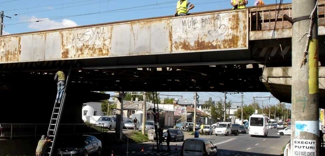 Vopsea proaspătă peste o înjurătură adresată lui Ponta. Schimbarea la faţă a unui pod de cale ferată din Brăila