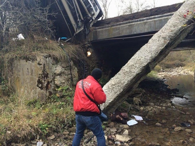10.55 Avem noi informaţii despre accident: autovehicului a intrat într-un sâlp al podului, iar o grindă de deasupra s-a prăbuşit peste maşină. Posibil ca o persoană să fie decedată.