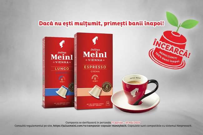 În perioada 17 aprilie – 31 mai 2023, poți savura fără griji orice sortiment de capsule Julius Meinl, pentru că primești banii înapoi dacă nu ești mulțumit.