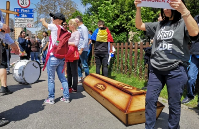 Amenzi pentru protestatarii din Braşov care i-au primit pe liderii ALDE cu un sicriu. Ce sancţiuni au primit din partea Jandarmeriei