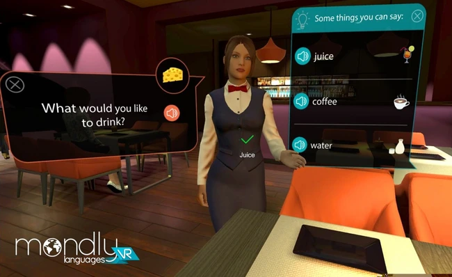 Astfel, cu ajutorul unui dispozitv pentru VR, utilizatorul ajunge într-un tren, hotel sau restaurant virtual, unde se împrieteneşte cu personaje care folosesc inteligenţa artificială pentru a purta conversaţii în diferite limbi. Aplicaţia oferă, imediat, feedback legat de pronunţie şi sugestii pentru îmbogăţirea vocabularului. Pentru a aduce laolată tehnologiile din spatele chatboţilor, recunoaşterea vocală şi realitatea viruală, compania a fost nevoită să dezvolte un sistem propriu de detectare a vocii. „Mai nou, tehnologii ca inteligenţa artificială şi realitatea virtuală aduc un nou nivel de realism în faţa utilizatorilor de astfel de aplicaţii“, a mărturisit Alexandru Iliescu, CEO şi cofondator al ATi Studios.