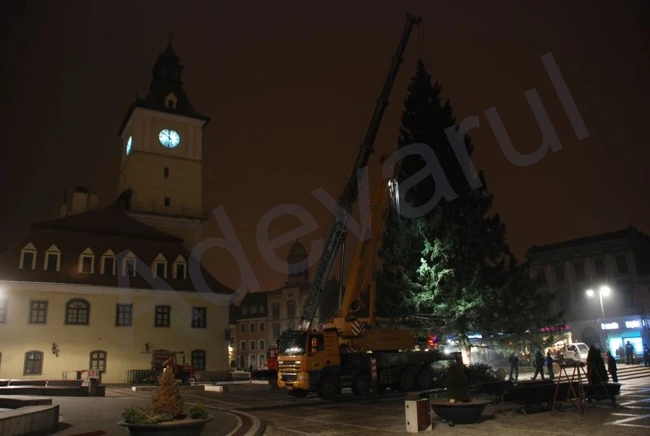 Arborele are 130 de ani şi o înălţime de 25 de metri. El a fost adus luni seara, din Poiana Braşov, şi a fost deja montat în Piaţa Sfatului.
