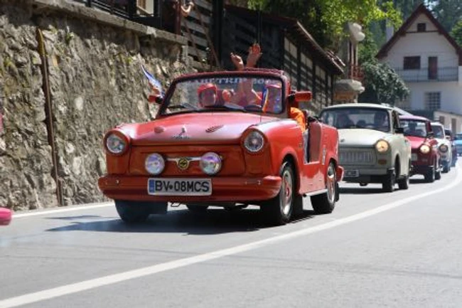 Peste 50 de pasionaţi ai maşinilor cu motoare în doi timpi s-au întâlnit în acest sfârşit de săptămână la campingul de la poalele cetăţii Râşnov, de unde au plecat în defilare, până în Piaţa Sfatului din Braşov.