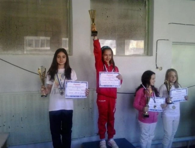 La categoria 8-9 ani, sportivii de la CSM Braşov au obţinut două medalii de bronz, prin Ioana Guliciuc şi Teodor Bucur şi una de argint prin David Mărgean. Principala favorită a categoriei 10-11 ani, Ana Maria Botezatu (foto sus) a fost întrecută în finală cu 8-6 de Patricia Popa (Dinamo Bucureşti).