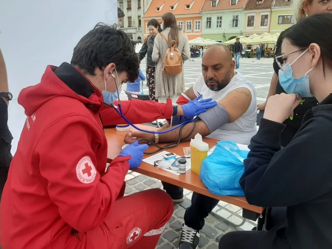 Numeroşi voluntari au fost pe întreaga durată a zilei de duminică în Piaţa Sfatului, unde fie au măsurat tensiunea sau glicemia trecătorilor, fie le-au arătat cum se face o resuscitare şi le-au explicat toate amănuntele extrem de importante, fie au ajutat la campania de vaccinare.