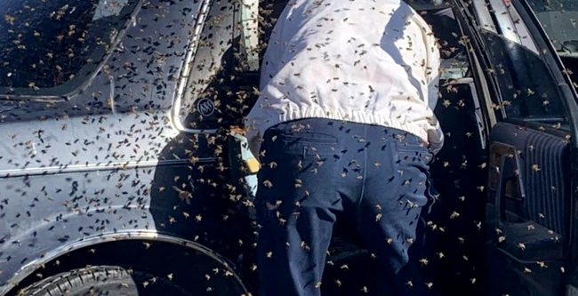 Cum insectele nu puteau fi alungate din locul în care nu se ştie ce le-a atras, jandarmii au păzit zona până la sosirea unui specialist de la Asociaţia Apicultorilor, care a salvat situaţia.