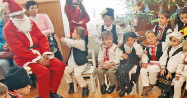 Îmbujoraţi de ger şi de emoţie, prichindeii i-au colindat lui Moş Crăciun şi i-au recitat poezii cu tematică religioasă, după cum se obişnuieşte în acele locuri. Au primit în schimb dulciuri, jucării şi cărţi din colecţia de 150 de titluri pentru copii editată de Adevărul Holding.