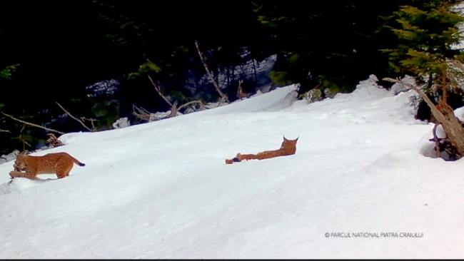 „Una din camerele amplasate de rangerii de la Parcul Naţional Piatra Craiului a înregistrat imagini care în mod sigur vă vor „afecta emoţional! Dragoste de râs!”, transmite Ministerul Mediului. Imaginile surprinse arată doi râşi care se hârjonesc în zăpadă.