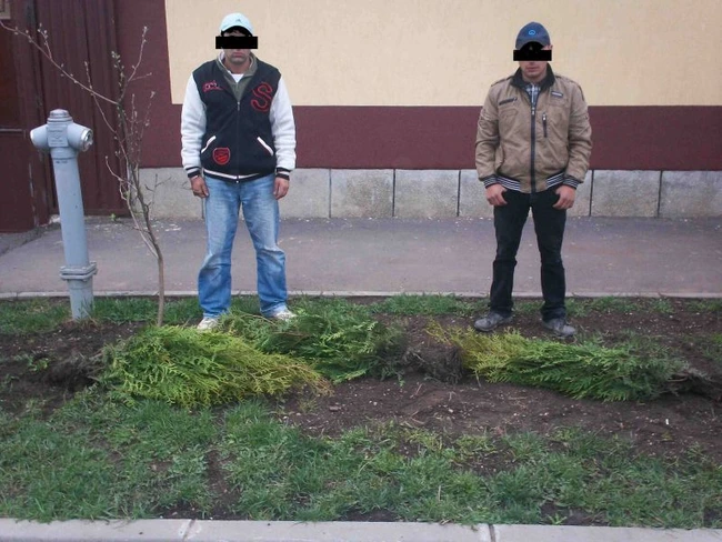 Bărbaţii de 21, respectiv 31 de ani nu aveau documente care să justifice provenienţa arborilor, aşa că au fost duşi la secţia de poliţie pentru continuarea cercetărilor. Suspecţii au recunoscut că au furat arbuştii de o stradă din oraş..