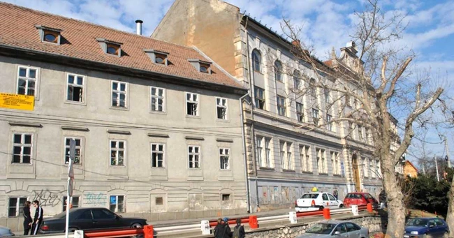 Clădirea din centrul oraşului în care învaţă acum elevii a fost revendicată şi este într-un stadiu avansatz de degradare.