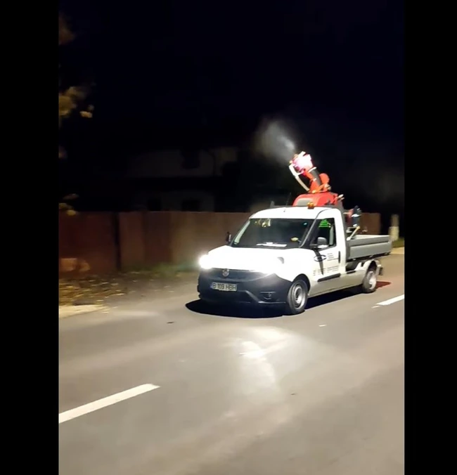 O maşină ce dezinfecta o zonă din Braşov a devenit virală pe internet. „Împrăştie Covidul, aşa ne omoară”, au comentat adepţii teoriei conspiraţiei VIDEO