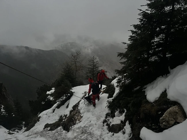 Potrivit salvamontiștilor, căderea, estimată la aproximativ 250 de metri, i-a provocat traumatisme severe.