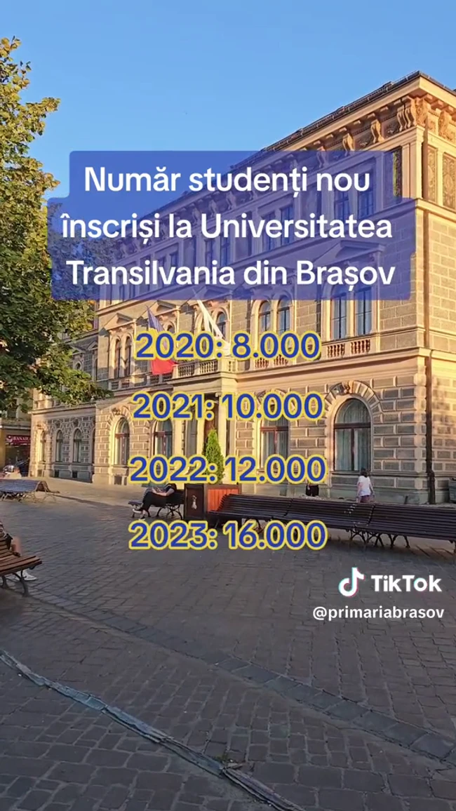 Primăria Brașov se laudă că are un număr foarte mare de vizualizări la postările pe contul propriu de TikTok. Recent, municipalitatea brașoveană a avut o postare legată de evoluția numărului de studenți ai Universității Transilvania. De fapt, era vorba de numărul de absolvenți de liceu înscriși, care și-ar fi dorit să fie studenți la Brașov.