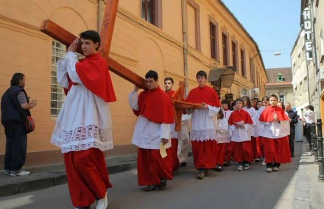 Procesiune religioasă de Florii pe străzile Braşovului