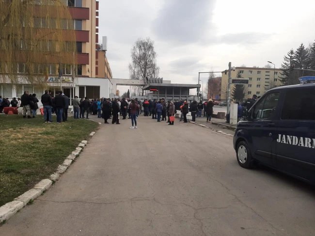 „Pentru că ne-au dat numai 60% din salariu. Bonurile, din luna ianuarie nu ni le-au mai dat. Păi, şi noi, avem familii, avem copii... muncim, dar banii unde sunt. Ieşim în continuare, nu ne lăsăm până nu ne dau drepturile noastre. Noi suntem cu minim pe economie. Păi, nu se poate! La noi, în secţie, e un ger de crapă pietrele”, s-a plâns o femeie.