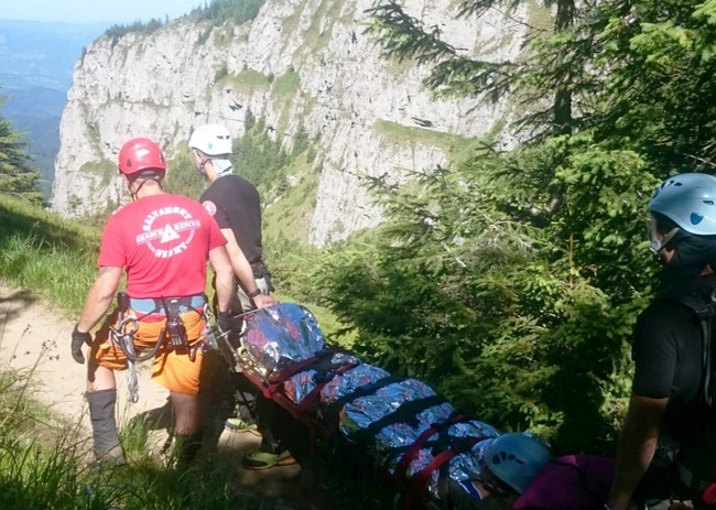 Bărbatul făcea o drumeţie în Masivul Piatra Craiului, dar a alunecat şi s-a rănit grav la un picior. A fost coborât de pe munte de jandarmi şi salvamontişi şi transportat ulterior la Spitalul Clinic Judeţean de Urgenţă Braşov.