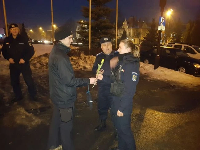 Gest superb din partea tinerilor veniţi la proteste la Braşov. Tinerii - fete şi băieţi - oferă flori, lalele, unei jandarmeriţe şi unui jandarm aflaţi în misiune, iar apoi se îmbrăţişează. Violenţa nu are ce căuta la Braşov!