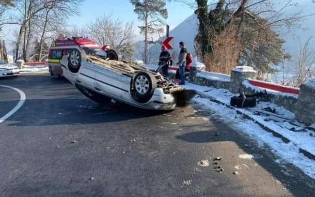 0Deşi maşina s-a rostogolit de mai multe ori, nimeni nu a avut de suferit. FOTO: ISU Braşov