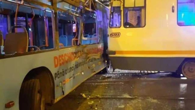 Accident în Capitală. Şase persoane au fost rănite după ce un tramvai a lovit în plin un autobuz