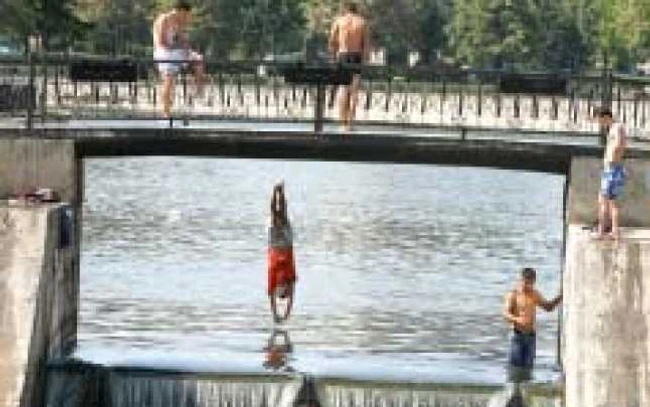 Unii tineri s-a răcorit ieri în apele Dâmboviţei