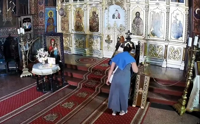 Video Cum se fură din altar. O femeie a fost surprinsă de camera de supraveghere în timp ce prăda o biserică