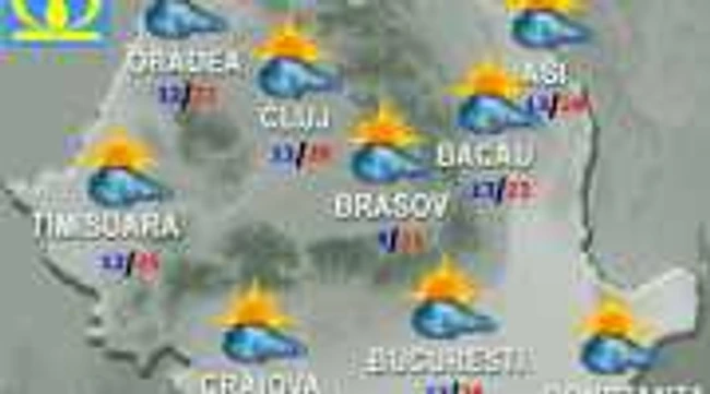 Temperaturile maxime se vor situa între 18 grade în nordul Moldovei şi 30 de grade în Lunca Dunării, iar cele minime de la 5-6 grade în depresiuni până la 18-19 grade pe litoral.
