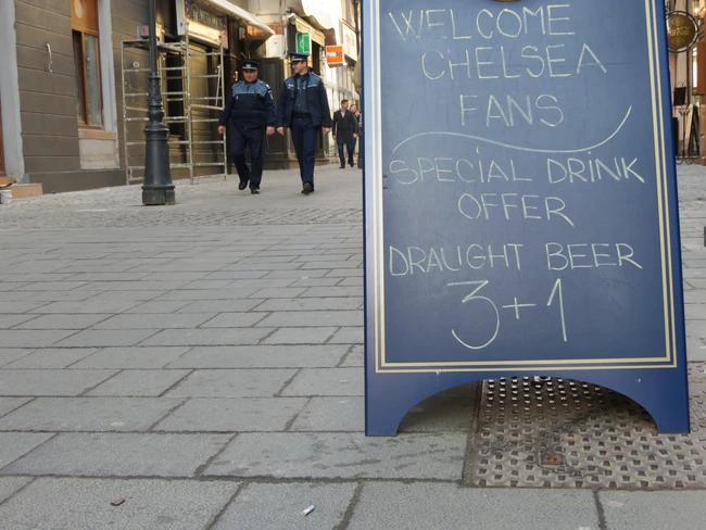 0Meciul dintre Steaua şi Chelsea este unul din cele mai aşteptate, atât de microbişti, cât şi de comercianţii din Centrul Istoric. Pancarte cu oferte de bere, steagul echipei la ferestre, fete frumoase la intrare şi multă bere rece, aşa s-au pregătit cârciumarii pentru venirea englezilor. Spre surprinderea tuturor însă, numărul englezilor care au venit în Bucureşti este mult mai mic decât cel anunţat iniţial.