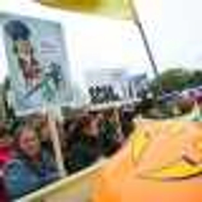 Alţi circa 2.000 de profesori ai Federaţiei Educaţiei Naţionale şi de la „Spiru Haret“ protestează la această oră la Palatul Cotroceni. Deşi înarmaţi cu pancarte şi fluiere, profesorii au ţinut un minut de reculegere pentru mama preşedintelui. Ei au renunţat la sicriele şi la crucile cu care voiau iniţial să vină la protest.