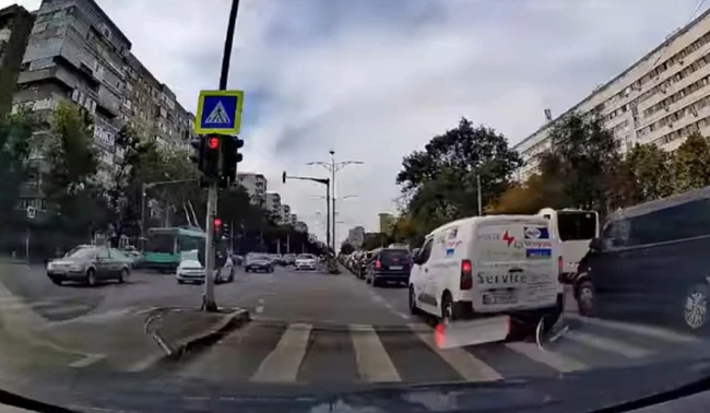 0Semaforul este doar un simplu element de decor într-o intersecţie aglomerată din Bucureşti. Nimeni nu ţine cont de culoarea semaforului, iar maşinile trec aproape toate pe roşu.