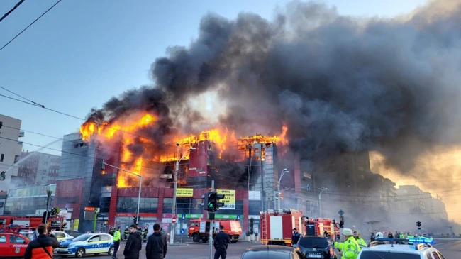 Video Incendiu uriaş la un centru comercial din Bucureşti. O parte din acoperiş s-a prăbuşit FOTO VIDEO