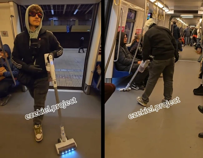 Tânărul, cunoscut în mediul online sub numele de Ezekiel Project, este cunoscut pentru clipurile lui amuzante. Într-unul dintre cele mai recente, acesta s-a filmat în timp ce dă cu aspiratorul în metroul din București.